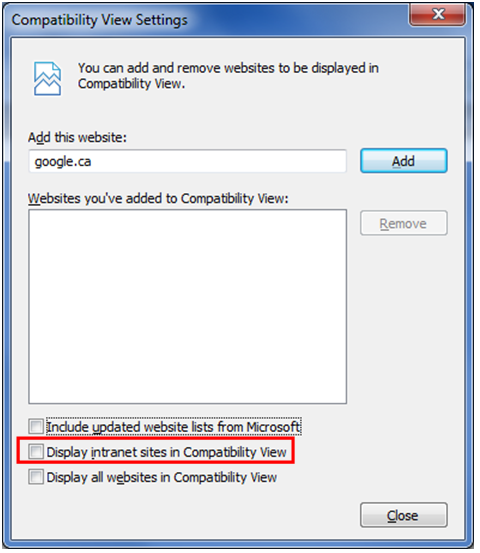 Compatibility View settings: