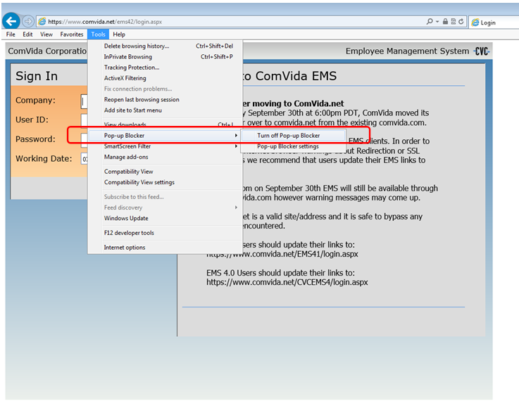 IE Set-up for EMS 4.2