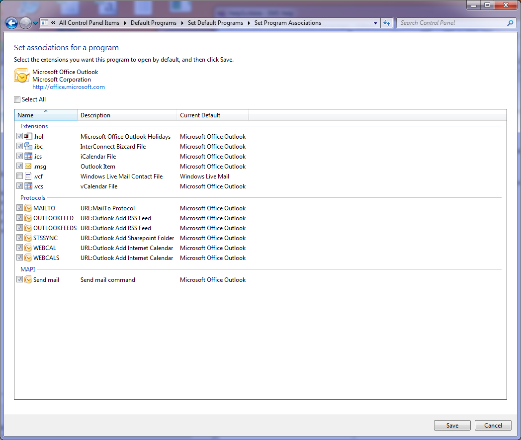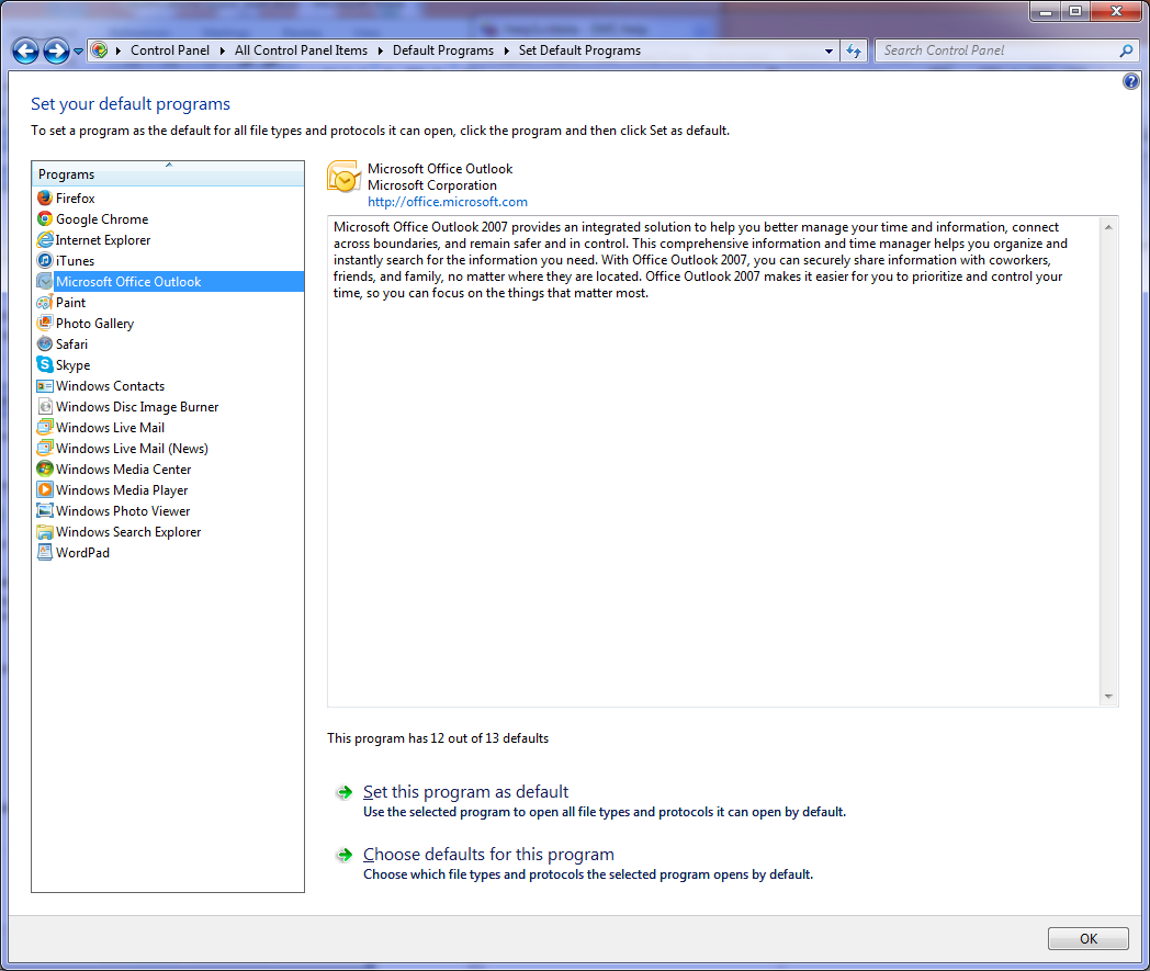 Select your default mail provider, e.g. Microsoft Office Outlook.