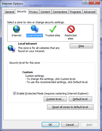 To enable Protected Mode for the current zone in Internet Explorer 10:
